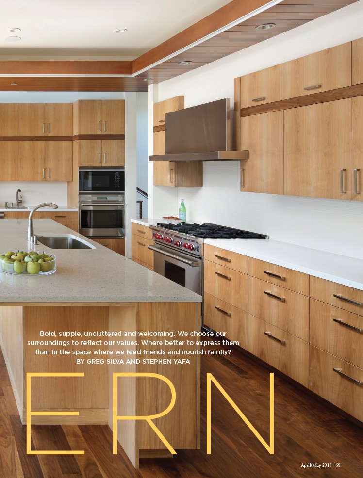 Bold, supple, uncluttered and welcoming. We choose our surroundings to reflect our values. Where better to express them than in the space where we feed friends and nourish family? ERN BY GREG SILVA AND STEPHEN YAFA April/May 2018 69