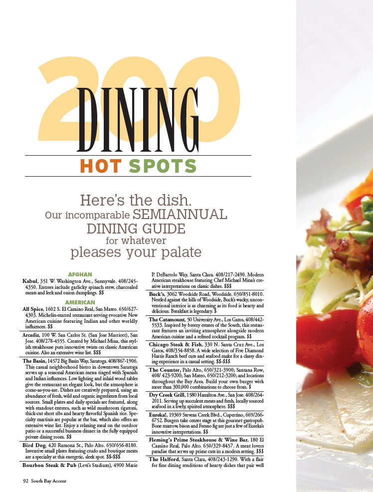 Gatos, 408/354-8858. A wide selection of Five Diamond