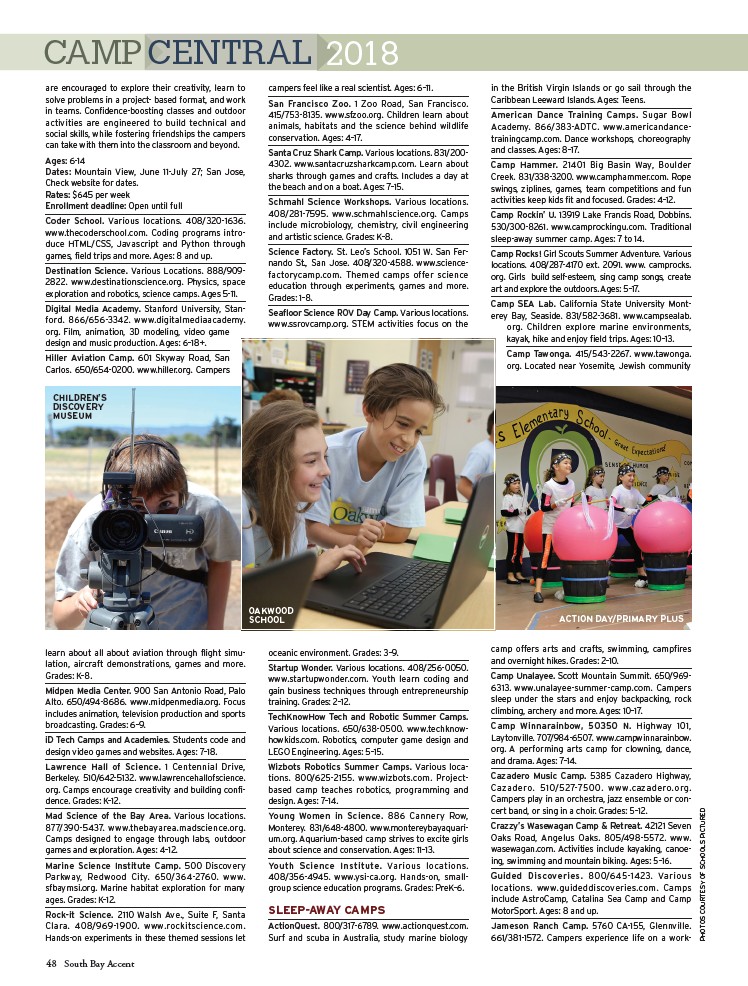 408/281-7595. www.schmahlscience.org. Camps