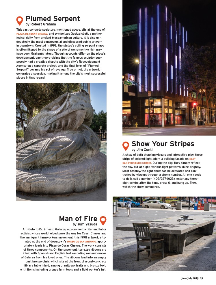 PLAZA DE CESAR CHAVEZ, and symbolizes Quetzalcóatl, a mythological